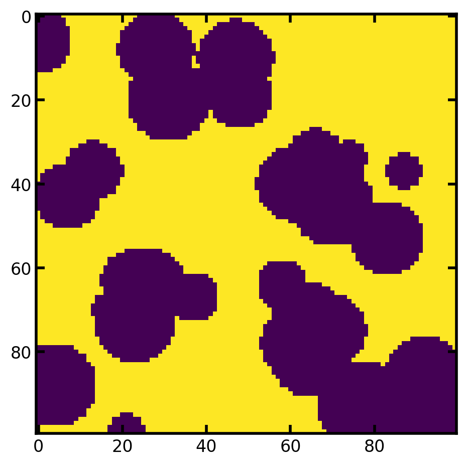im = ps.generators.overlapping_spheres(shape=[100, 100, 100], r=10, porosity=0.5, maxiter=0)