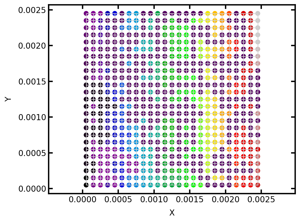 pn = op.network.Demo(shape=[25, 25, 1], spacing=1e-4)